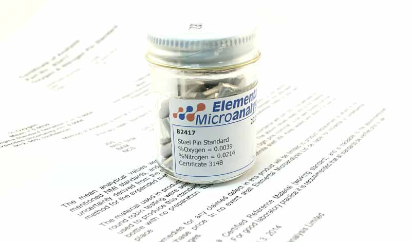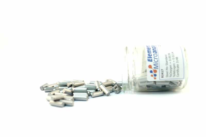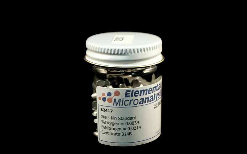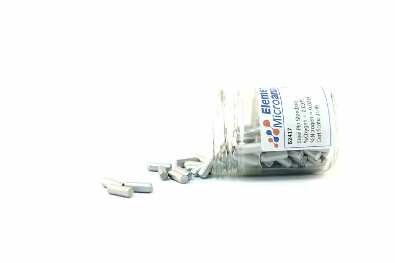 Steel Pin Standard 1 g Approximate values 222ppmN 33ppmO 0.0222%N 0.0033%O See certificate 1023Y for actual values. 100 g