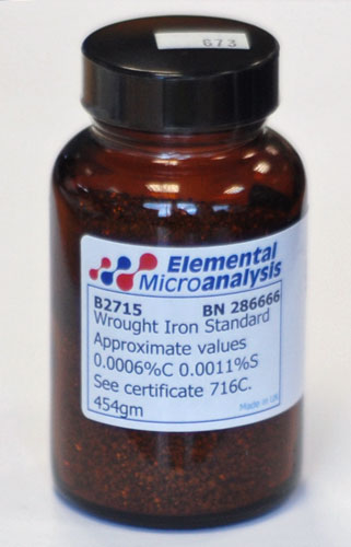 Wrought Iron Standard Approximate values 0.0006%C 0.0016%S See certificate 120F. 454 g